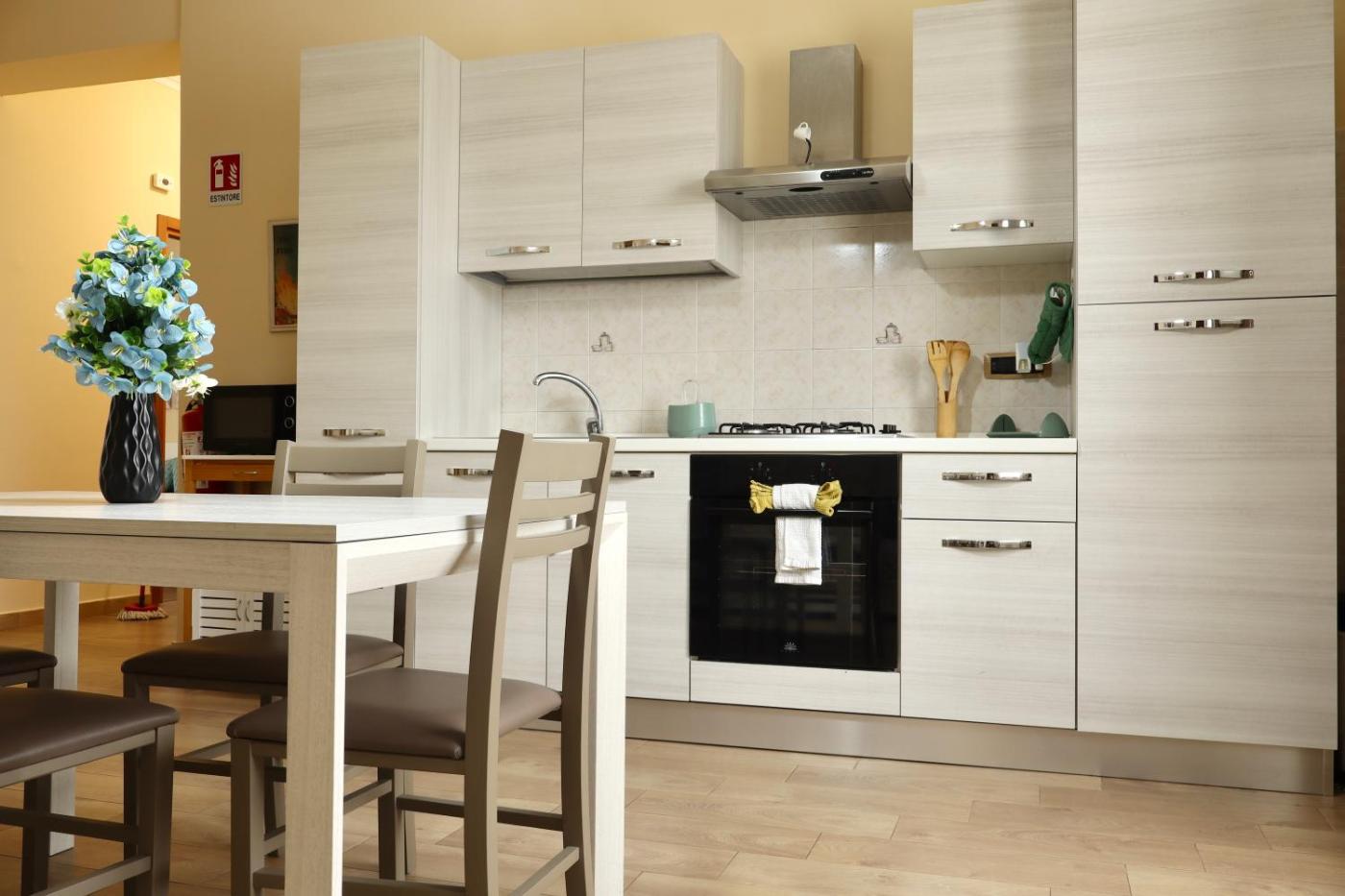 Camera Matrimoniale Standard con Bagno in Comune. Featuring free toiletries and bathrobes, this double room includes a shared bathroom with a bath, a shower and a bidet. The well-fitted kitchen has a stovetop, a refrigerator, an oven and a microwave. The air-conditioned double room features a flat-screen TV with satellite channels, a washing machine, a tea and coffee maker, a seating area as well as a quiet street view. The unit has 1 bed.