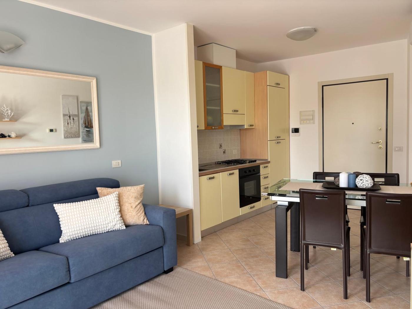 Appartamento con 1 Camera da Letto. This air-conditioned apartment consists of 1 living room, 1 separate bedroom and 1 bathroom with a shower. In the kitchen, guests will find a stovetop, a refrigerator, kitchenware and an oven. Featuring a terrace with sea views, this apartment also provides a washing machine and a flat-screen TV. The unit offers 2 beds.